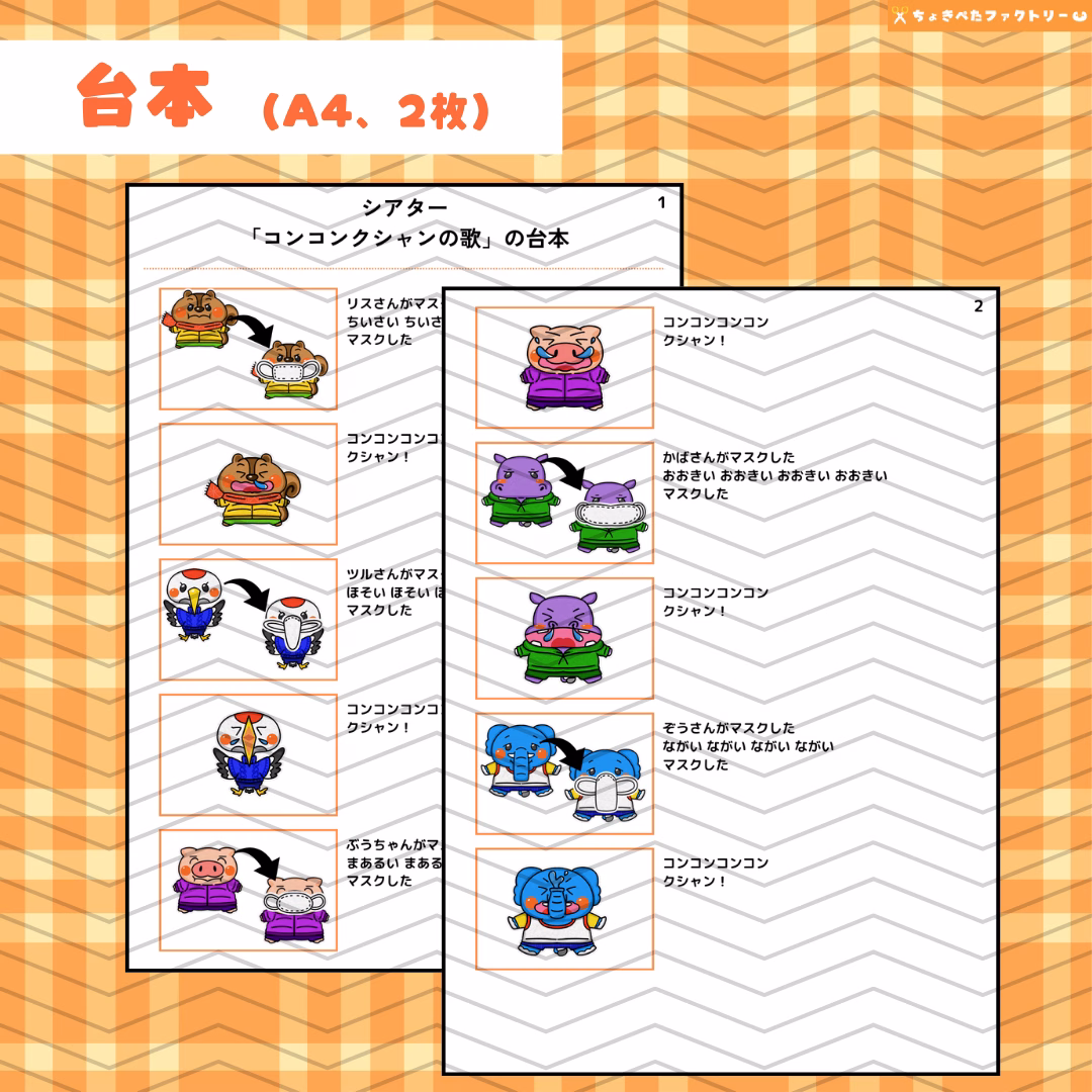 「コンコンクシャンのうた」は、「マスクをつけて、くしゃみをしたときに外す」アクションが見どころのパネルシアターです。